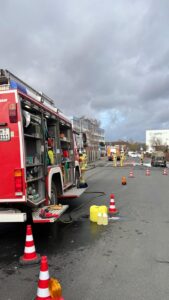 Für die Dauer der Löscharbeiten musste die Carl-Zeiss-Straße im Bereich des Netto-Parkplatzes teilweise voll gesperrt werden. Neben der Feuerwehr waren auch Einsatzkräfte der Polizei sowie der Kriminaldauerdienst vor Ort.