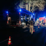 Die verunfallte Fahrerin wurde bis zum Eintreffen des Rettungsdienstes von Ersthelfern und Feuerwehr betreut. Weiterhin sicherten die Feuerwehrleute die Unfallstelle ab und leuchteten diese aus, stellten den Brandschutz sicher und klemmten die Batterie ab. Die Fahrerin wurde mit dem Rettungswagen in die Klinik transportiert. Nachdem der Unfall von der Polizei und der Unfallforschung aufgenommen wurde, räumten die Ehrenamtlichen die Unfallstelle auf und der PKW konnte abgeschleppt werden.