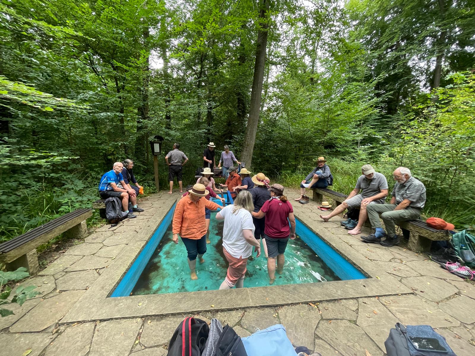 Das waren Mitglieder des Musikzuges Hiddestorf/Ohlendorf, die sich mit Wanderstock und Lunchpaket auf den Weg gemacht haben, um gemeinsam einen schönen Tag zu verbringen. Ein Pub-Quiz und eine Gesangseinlage im Anhänger auf den Feldwegen, eine Wanderung bei Wennigsen mit Picknick, Abkühlung für die Füße (frei nach Sebastian Kneipp) und einem Besuch bei den Wasserrädern sowie ein Zwischenstopp an einer Eisdiele trugen zur ohnehin schon guten Laune aller Beteiligten bei, bevor es zum gemütlichen Teil des Tages, dem Grillen vor der heimatlichen Feuerwache, überging.
