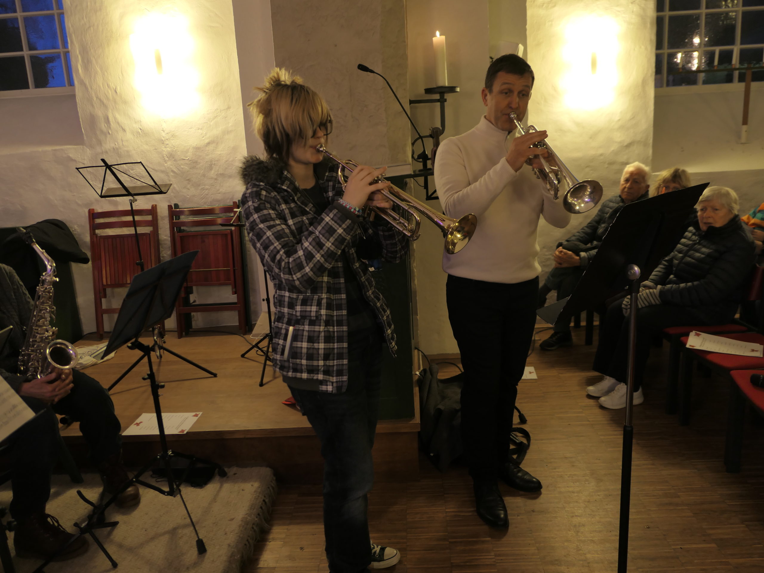 Vor zahlreichem Publikum konnten die jungen Musiker ihr Können zeigen - sowohl solistisch als auch im Orchester unter der Leitung von Bernd Meutzner vertretend für Sonja Donner. Zusammen mit Mirco Meutzner, ihrem Lehrer, boten Justus, Max, Mika, Jon und Anton dem Publikum souverän eine Auswahl an Solostücken.