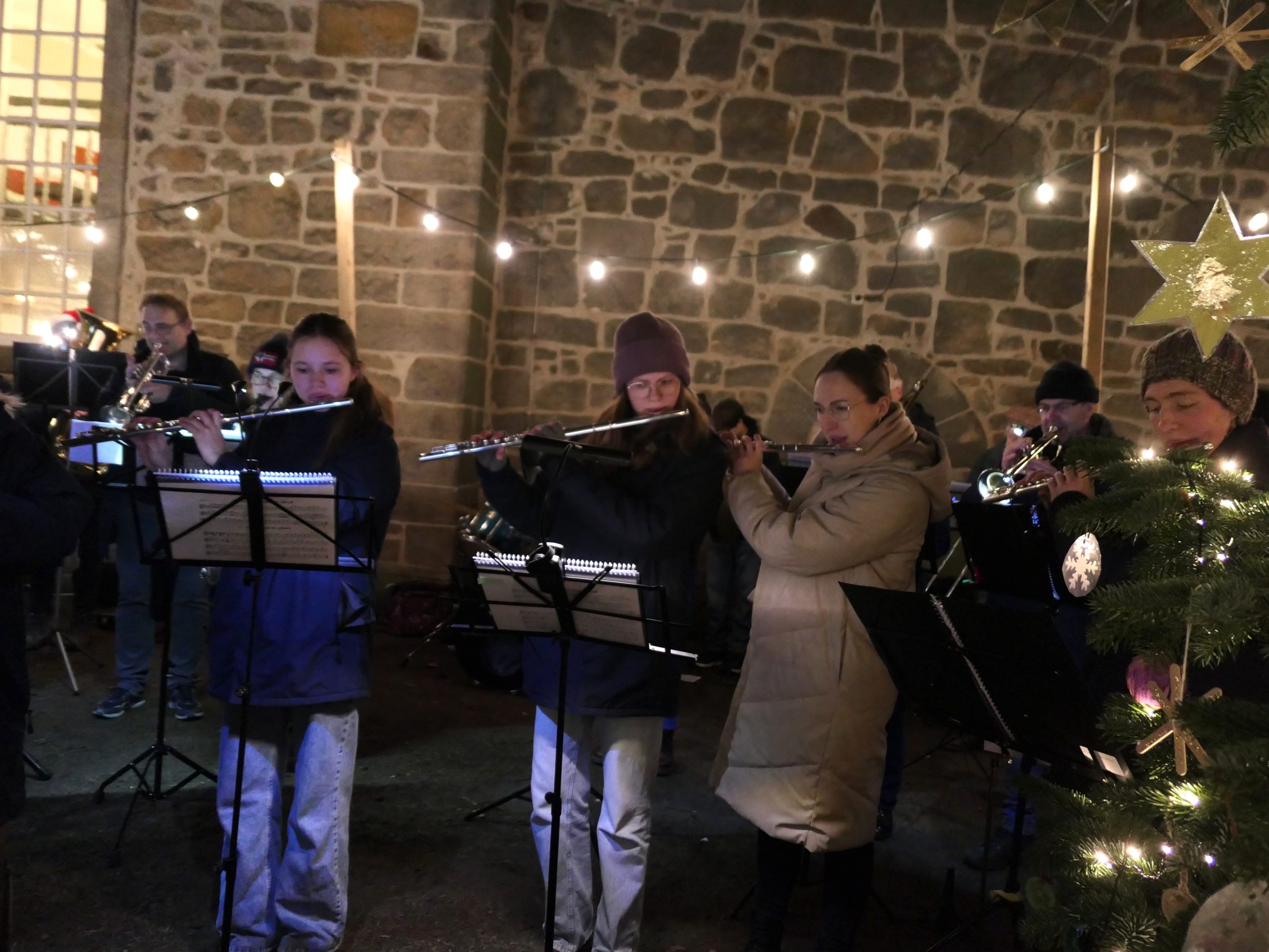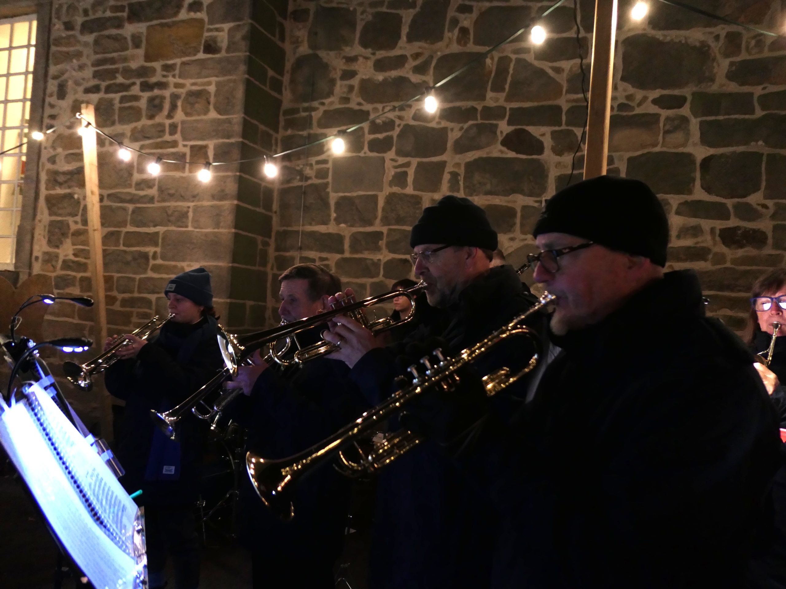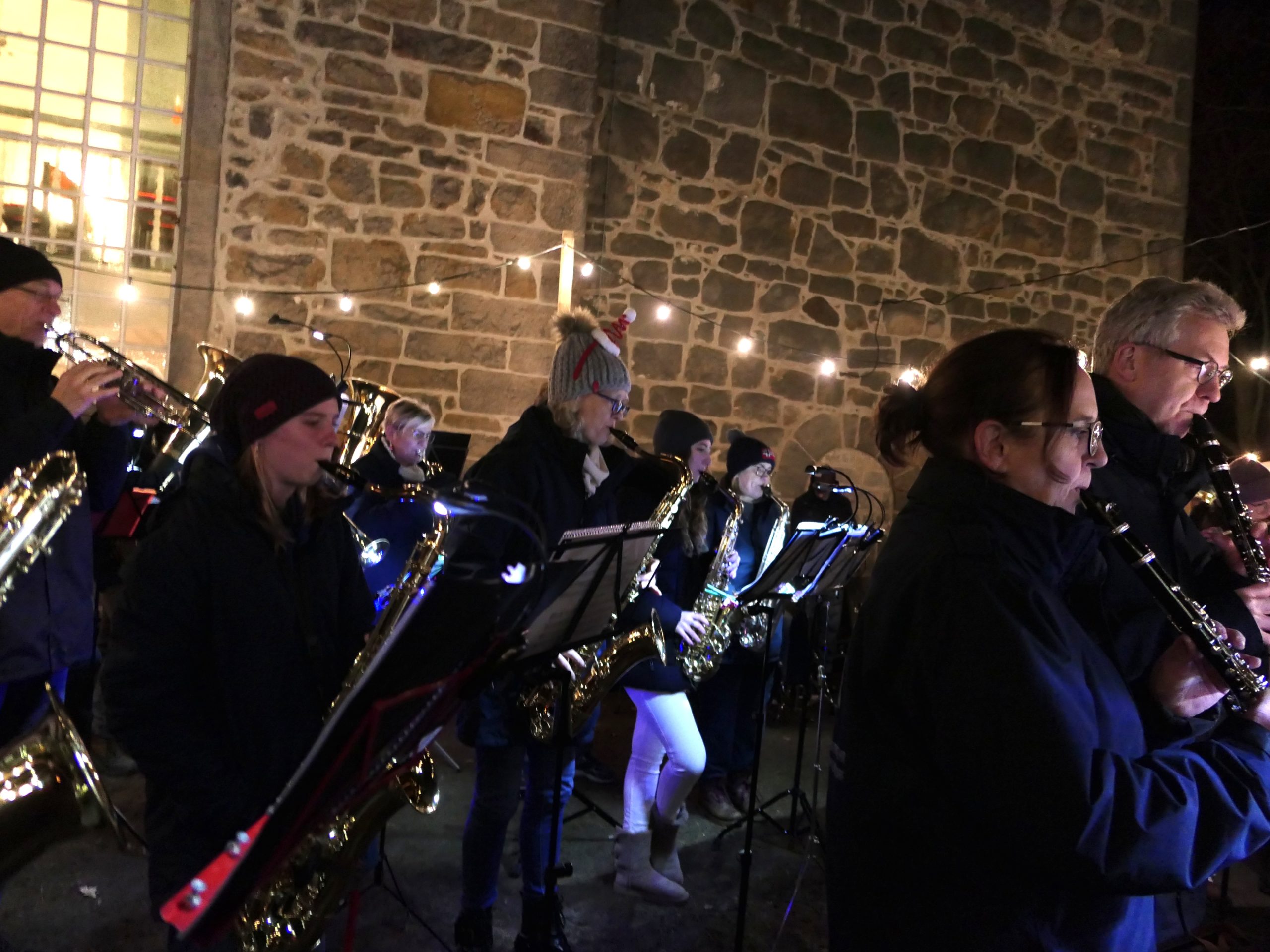 Um 19h spielte der Musikzug unter der Leitung von Mirco Meutzner draußen vor der Nicolaikirche, um zwischen Schmalzkuchen und Glühwein mit feierlichen Weihnachtsstücken traditioneller und moderner Art zum stimmungsvollen Ambiente beizutragen.